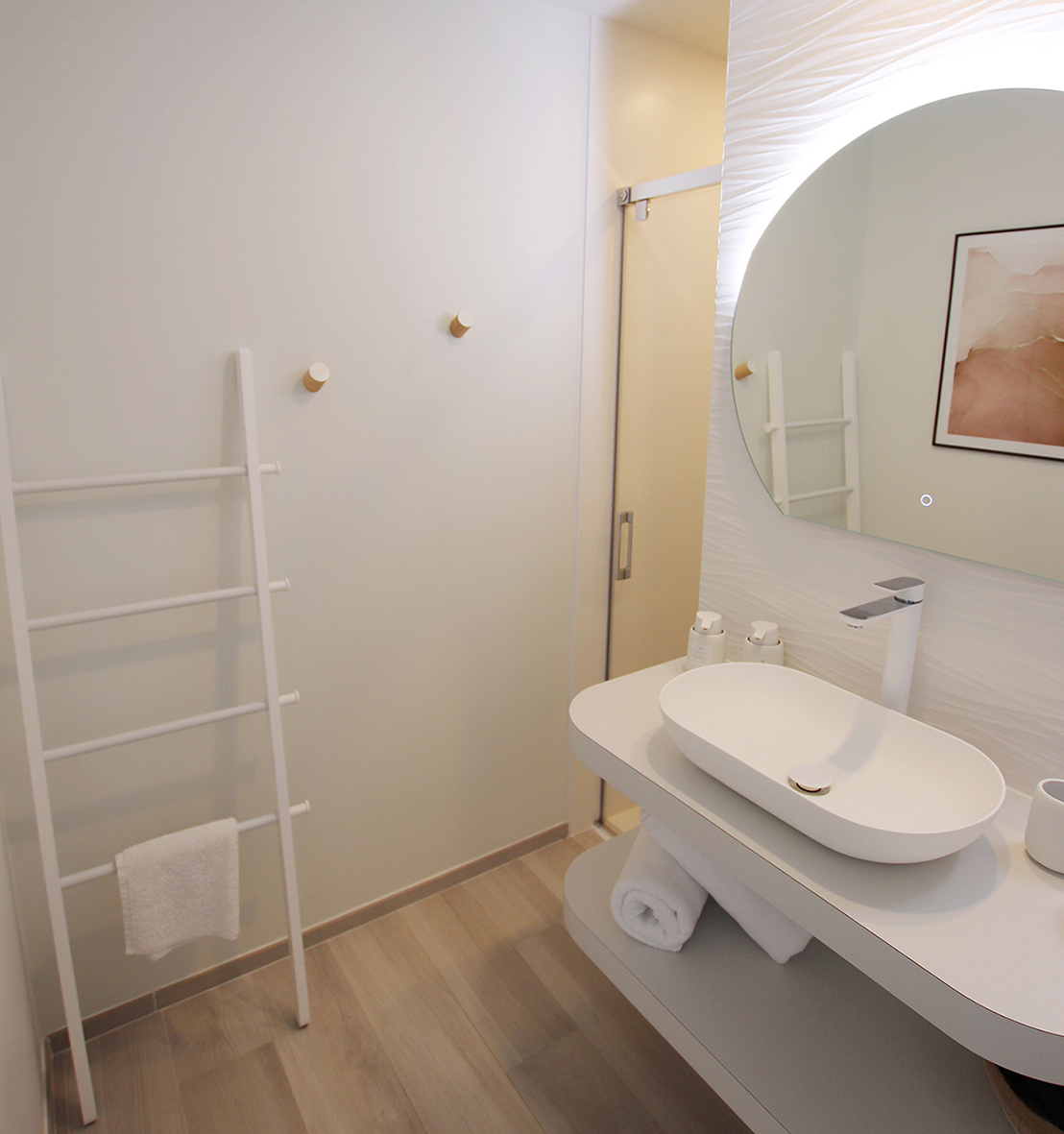 Inspirez, respirez, vous êtes dans une “bulle d’air”, cette chambre tout en légèreté vous permet de rêver, de vous évader. La tête dans les nuages… Un cocon de plénitude.